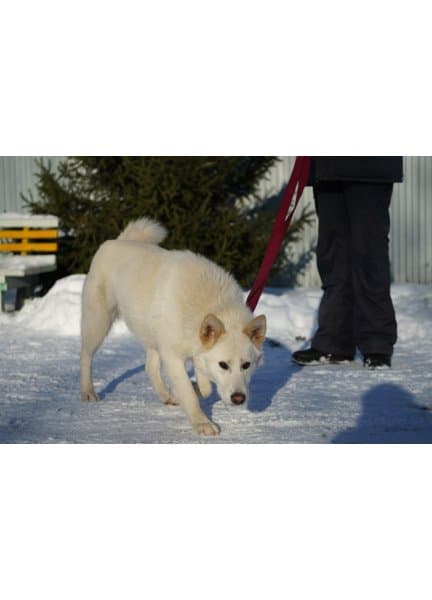 Щенок Нора 🐕 из приюта — 2 года, белый, девочка, среднего размера